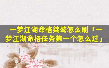 2、一梦江 🕷 湖命格任务第一个怎么过