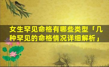 1、女生罕见 🌺 命格有 🌳 哪些类型