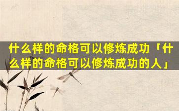 3、什么样的命格 💐 可以修 🌷 炼成功呢