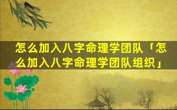 3、怎么 🦢 加 🐟 入八字命理学团队呢