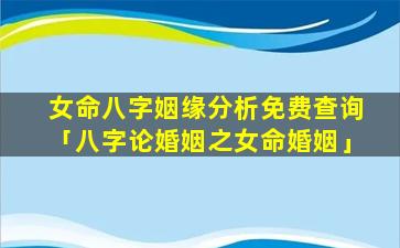 1、女命八字姻缘分析 🐱 免费查询 🦟