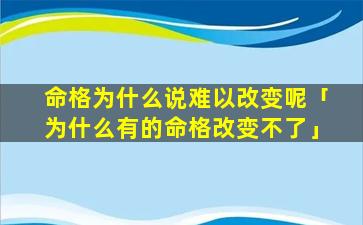 1、命 🦆 格为什么 🌼 说难以改变呢
