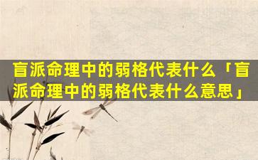 3、盲派命理中的弱格代表什么 🐞 生 🦢 肖