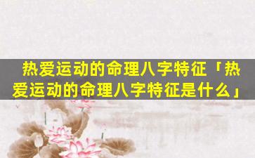 3、热爱运动的命理 🦢 八 🐝 字特征有哪些