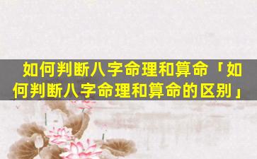 如何 🐬 判断八字命理和算命一 🌿 样 🌵 ?