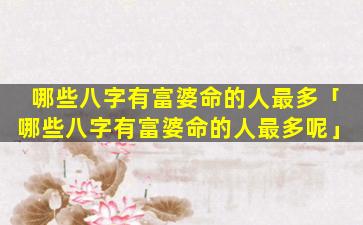 2、哪些八字有富 🐵 婆命 🐺 的人最多呢