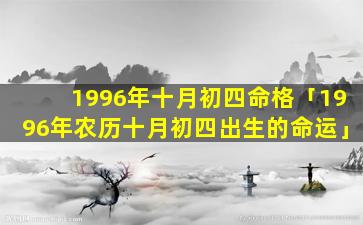 总体来说,1996年10月,初四出 🦄 生的人命运较为平稳有潜力在事业和财运方面取得成功 🌻 。但,需,要,注。意感情和 🐱 健康问题把握机会努力奋斗方能获得幸福美满的人生