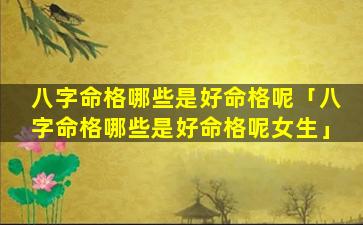 2、八字命格 🐞 哪些 🌾 是好命格呢女生