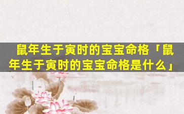 鼠年生于 🐡 寅时的宝 🦈 宝命 🦆 格