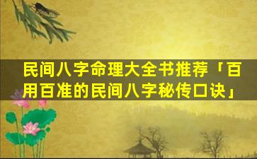 2、百用百准的民间 🪴 八字秘 🦢 传口诀