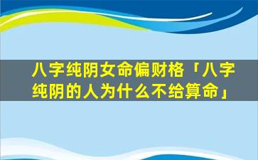 2、八字纯阴的人 💐 为什么不给算 🌿 命