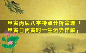 甲寅丙辰八字 🦢 特点分析命 🐋 理 💮