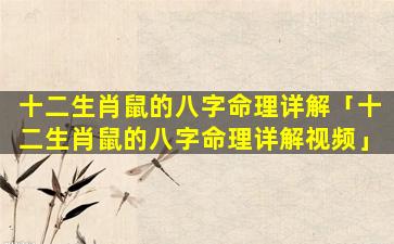 [视频] 十二生 🐞 肖鼠的八字命理详解