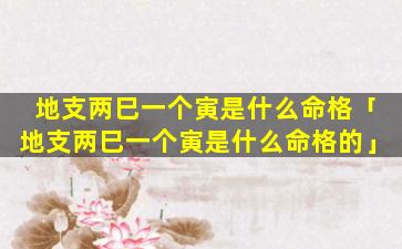 1、地支两巳 🐋 一个寅是什么命格