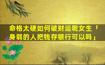 身弱在八字命理中指的是一个人的元气较弱,无法驾驭过多的财运。因,此身弱的人存钱在银行可能会带来一 🐳 些影响: