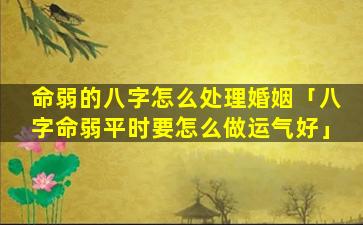 1、命弱的 🦆 八字怎么处理婚 🐯 姻