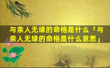 2、与亲人 🦁 无缘的命格是什么意 🦍 思