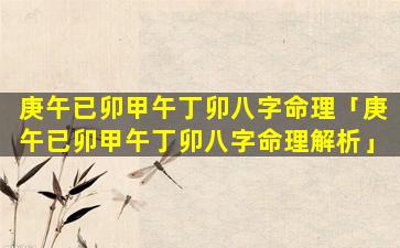2、庚 🌹 午 🐠 已卯甲午丁卯八字命理解析