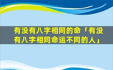 有。在理 🦈 论上,两个人的八字可以完全相同。这发生在两个人出生于同一年同、月同、日同、时同、地。点,的。情况虽然不太常见但这种情况确实有可能发生