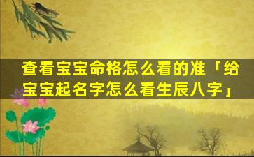 3、查看宝宝命格怎 🐳 么看的准 🐈 不准
