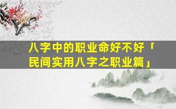 1、八字 🐟 中的职业命好不好