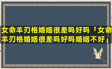1、女命羊刃格 🌴 婚姻很 🌺 差吗好吗