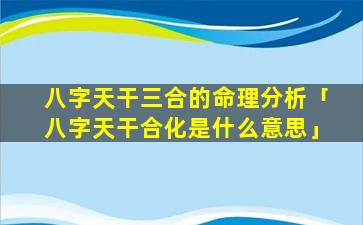 天干三合是四柱八字命 🍁 理学中的一个概念,指的是天干中三个相合的关系。