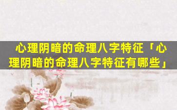 2、心理阴暗的命理 🍀 八字特 🐘 征有哪些