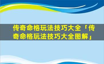 4、传奇命格玩法技 🌷 巧大全 🐎 攻略