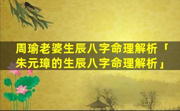 周瑜没有老婆叫生辰八字,因此无法进行命 🌲 理 💮 解析。