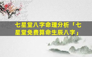 2、七星 🕊 堂免费算命 💐 生辰八字