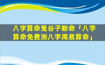 八字算命 🌼 鬼 🌾 谷子断命