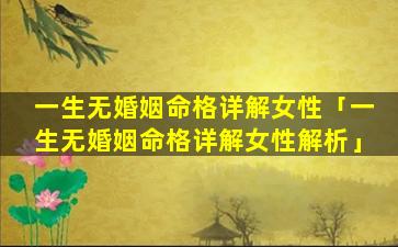 一 🌼 生无婚姻命 🦉 格 🐘 详解女性