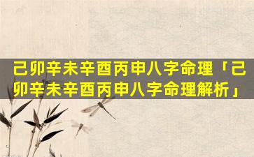 4、己卯辛未辛酉丙申八字命理详 🦉 解