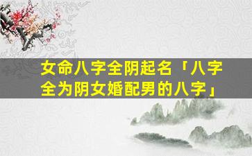 八字全阴女命与八字全阳 🕷 男命的婚配,在,传统命理学中被认为 🐅 是阴阳“相,济大吉大利的婚配 🐒 ”组合。
