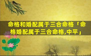 3、命格婚配属 🕷 于三合 🐞 命格好不好