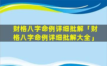 财格 🐵 八字命例详细批解大全