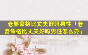 1、老婆命 🦋 格比丈夫好吗男性 🌿