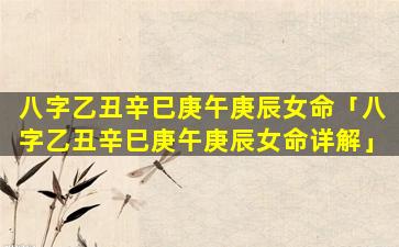 1、八字乙丑辛 🦋 巳庚午庚辰女命
