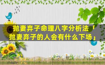 实际情况中,抛,妻,弃子的后果可能是复杂的受多种 🐕 因素影 🍀 响例如: