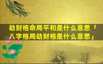 1、劫财格命局平和是什么 🌻 意 🕊 思