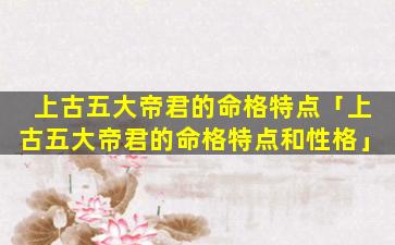 3、上古五大 🐼 帝君的命格特点是 🐕 什么