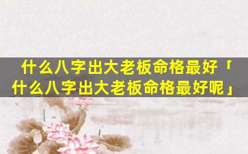 从八字命理的角度来看,以下八字 🐎 特征可能预示着 💐 大老板命格: