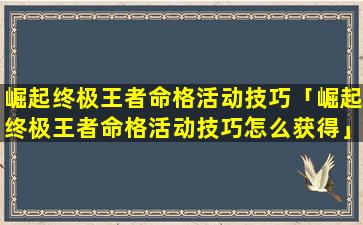 2、崛起终极 🌵 王者命格活动技巧怎么获 🌻 得