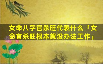 2、女命官杀旺根本就没办法 🪴 工 🦋 作