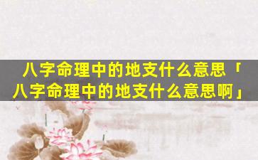 1、八字 🐒 命理中的地 🐡 支什么意思