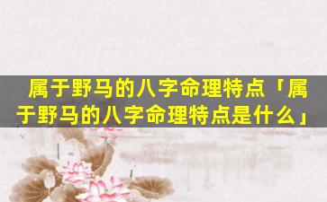 野马一般并非用于描述人的八字命理,因此无对应的八字 🍀 命理特点。