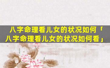八 🐳 字命理 🦁 看儿 ☘ 女状况