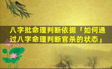 八 🕸 字命理中的官杀 🐼 状态 🍀