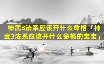 2、神武3法系应该开 🐧 什么命格的宝宝